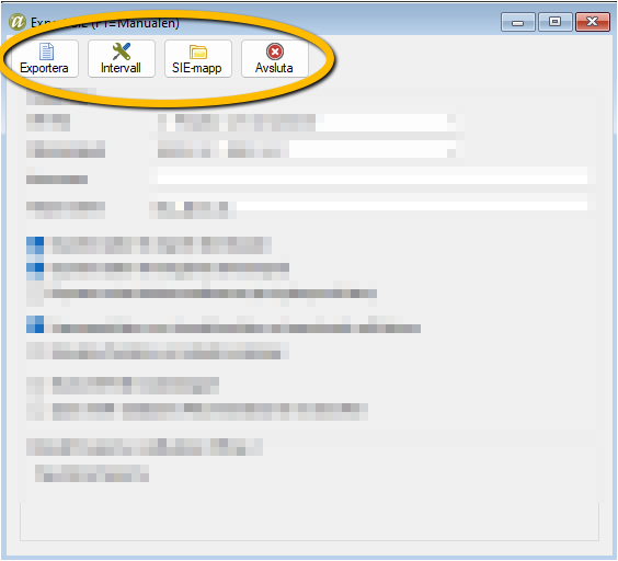- När du gjort alla inställningar klickar du på knappen Exportera så startar exporten av SIE-filen.