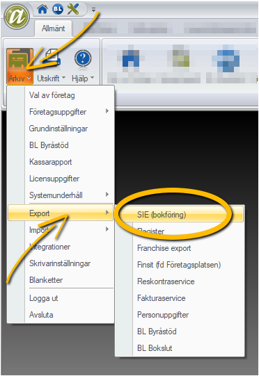 - Välj Arkiv – Export – SIE (bokföring).