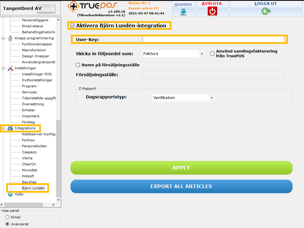 - Genom en API-koppling mellan TruePOS och Bjorn Lundens ekonomisystem slipper du en hel del manuell inmatning och sparar många timmars bokföringstid varje månad.