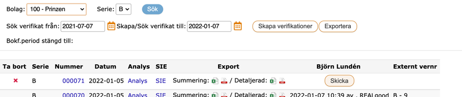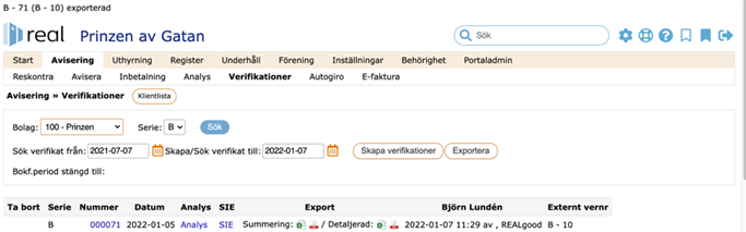 - I det här fallet skickades verifikat B-71 från Real som fick verifikat B-10 hos Bjorn Lunden.