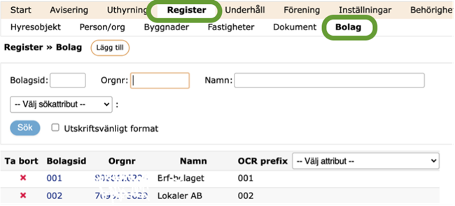 - Navigera till Register – Bolag och välj det bolag du vill ansluta till Bjorn Lunden