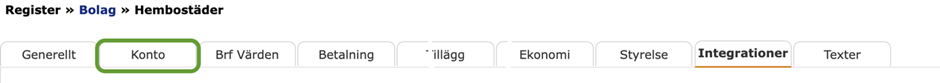 - Välj fliken Konto enligt bilden nedan. Bolag – Konto.