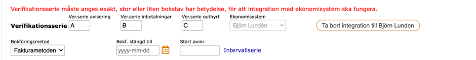 - Bocka för Integration ekonomisystem och tryck på Spara