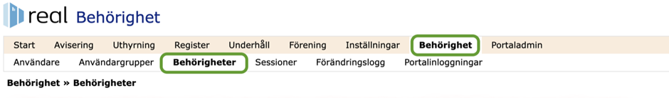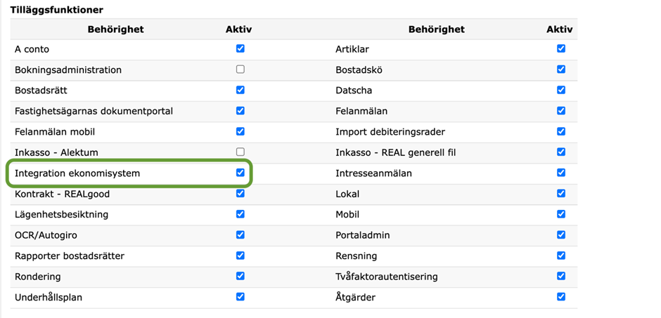 - Aktivera behörighet för Integration mot ekonomisystem i Real Fastighetssystem. Navigera till Behörighet- Behörigheter